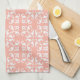 Lacy cutwork, white linen-look fabric texture over peach with white swiss dots - digital art