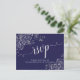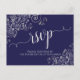 Lacy Silver Calligraphy Navy Blue Wedding RSVP Postcard