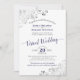 This beautiful virtual wedding invitation is a great way to invite your friends and family to share in your special day without risking their health and safety. Features an elegant navy blue and white design with lacy script calligraphy and silver faux foil filigree in the corners. The instructions field is flexible so you can easily direct your guests to a website, or give them a livestream link. Remember, just because we can't be together doesn't mean we can't celebrate together.