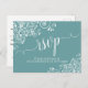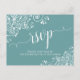 Lacy White Calligraphy on Teal Wedding RSVP Postcard