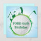Birthday invitation that can be used for a 40th. Birthday, as the design has fore-tieth text on a golf ball. the outside of the ball has a Lady swinging a club, a golf cart flags clubs and grass.The card can be customised to the persons name and the other text can also be changed to suite.