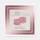 These glamourous Ladies' Game Night party napkins features a shiny looking, metallic-like dark pink background with a soft, blush pink square in the centre. The blush pink square is bordered with a champagne gold glitter style border and a second, larger frame is placed outside of the first. A large pair of pink glitter dice are placed in the centre and a shiny golden accent swirl appears near the bottom.