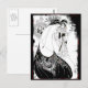 Art Nouveau design depicting woman wearing peacock feather gown and headdress. Stylish black and white drawing by English artist and illustrator Aubrey Beardsley.