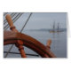 A view of Lady Washington from the deck of the schooner Adventuress on a misty grey day in Port Townsend, Washington.