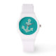 Women's nautical wristwatch with cute green boat ships anchor symbol and pretty coloured background colour you can change. Wear your time in style with this marine theme design, designed for ladies or girls.