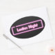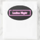 The words Ladies Night set in bright neon pink on a oval sticker.