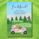 This elegant pink golf cart on a forest golf course, loaded with moving boxes. It's a unique and humourous design that's sure to bring a smile to your fellow golfers and friends when they get this card.