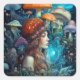 Lady And Mushrooms Surreal Fantasy Art Square Sticker