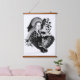 The polyester fabric displayed many wrinkles and several sharp creases throughout. At the bottom of the tapestry, I noticed a bulge in the fabric because it was not pulled tight enough before being connected to the wooden boards. It took me over an hour to spay water on the tapestry before putting it on an ironing board where I used a warm iron over a polyester cloth to remove the wrinkles and creases in the material. I was able to get out the wrinkles and creases that made that tapestry look as beautiful as its picture.