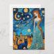 Lady and the Cat in the City at Night Postcard