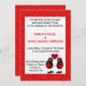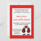 Cute wedding invitation done in a red, black, and white background. Cartoon graphics of two lady bugs holding a heart, decorate the bottom right corner. All text is customisable to suit your wedding needs. Adorable wedding invitation for the fun loving couple.