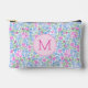 This customizable ladies accessory pouch features pink and blue hand drawn flowers with a personalizable monogram. It's a stylish pink accessory that would be a good gift for any woman to keep things from pens and pencils to golf tees and balls in.