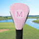This customisable ladies golf head cover features pink hand drawn gingham with a personalizable monogram. It's a stylish pink accessory that would be a good gift for any woman who plays golf.