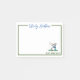 This 4"X3" Post-it® note pad features a simple green border, with a golf ball and golf clubs. The text reads, "Lady Golfers Have More Drive"