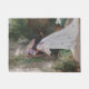 This design features a painting by the French artist Victor Gabriel Gilbert (1847–1933). It shows an elegant young lady wearing a long white dress. She is in a garden and she is holding a watering can as she cares for her plants and flowers. There is also a small white dog sitting on a bench in the garden. The lady is holding a pink parasol. There is a wooden trellis against the wall of the woman's house where flowering plants are also growing.