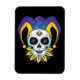 Get ready for your Mardi Gras party with this colourful Lady Jester skull with fleur de lis, jewels and heart.