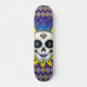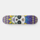 Lady jester skull with fleur de lis and heart on a diamond background.