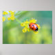 close-up of a ladybug on little yellow flowers - summer beauty