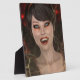 3D digital render of a beautiful fantasy lady vamp on a red sparkling background