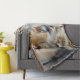 A quality printed throw has its advantages. This is a much finer weave throw than its loopier cousins, and though lighter, it is worth the investment for custom room accessorizing. The back is much prettier than the typical brown, and the fringe on the long sides very vivid, the selvage nicely done. Before photographing, I washed the throw in cold water, delicate, with a thicker woven throw the same size. On tumble dry low, this throw was dry in half the time as the other. This is a very practical quality if you use throws for furniture covers or to wrap up in frequently. The sleekness of the fabric makes it a great layer for accenting or protecting without the feeling of sitting on too much stuff. Perfect for napping or when you feel a light chill coming on. The color printing is beautiful and on this fabric, matched the design and color of my Photoshop image. This is an advantage for blending room fabrics and colors. The fringe on the short sides prints the colors from the design image and therefore varies from the side fringe. I streaked a white fractal line through the plaid pattern to give the illusion of weaving. This printed as crisp as an illusory thread, and put some white in the short side fringe, showing another advantage of print vs loomed- for artistic purposes, line lines, detail, and color integrity can be planned and preserved. My loomed throws have color limitations and more of a needlepoint texture. Print throws reproduce an exact image. The throw felt a little stiff straight out of the package, but this went away in the first delicate wash. Of course I searched the wash water for ink or bleeding and there was none.