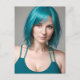 AI generated portrait photography of a 30 year old woman with teal hair wearing a spaghetti strap tank top and giving an intense stare to the camera