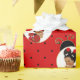 Baby wearing ladybug wings and antennae on a red & black dot background. Perfect for a ladybug baby shower or ladybug theme birthday party.