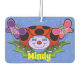 A lovely red ladybug with black spots, long eyelashes and big blue eyes and a red nose, surrounded by a pink butterfly and purple butterfly as she sits on a green lily pad with a multi colour confetti background makes up this fun air freshener. Customisable so you can add your own text and change the background colour. Makes a great gift!