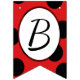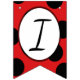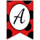 Joining the party theme is a party bunting banner with the letters "Happy Birthday" on each flag and a red background with black dots and a white oval surrounding each letter.  As part of the "Ladybug" theme this is a cute design for girls on their special day of celebration.