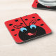 This adorable lady bug with cute swirly antenna, big blue eyes and black polka dots on her red wings is licking her smiling lips in eager anticipation of the day.