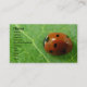 This cute gardeners business card features a close-up photograph of a British 7 Spot ladybird sitting on a leaf. The photo was taken from directly above the ladybug using macro photography resulting in an image so detailed that you can see all the veins on the leaf that the ladybug is sitting on. The photograph is on the front of the business card, accompanied by customisable black text. There is an enlarged version of the photo on the back of the business card. This business card was designed for gardeners but is suitable for other businesses as well.