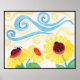 Add your child's name or a favourite quote or message to this original watercolor painting featuring a couple of cute lady bugs, bright and sunny yellow flowers and blowing wind design.