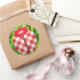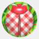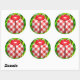 Ladybug grass gingham check cute red white green classic round sticker
