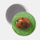 This cute magnet features a close-up photograph of a British 7 Spot ladybird sitting on a leaf. The photo was taken from directly above the ladybug using macro photography resulting in an image so detailed that you can see all the veins on the leaf that the ladybug is sitting on.