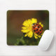 An Asian ladybug beetle is perched on a yellow wild flower in my garden.