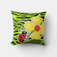 Ladybug on Chartreuse Zebra Stripes Animal Print Cushion