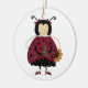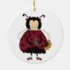 Adorable round ornament with lovely country primitive artwork of a ladybug character holding a sunflower. Great Christmas tree ornament any ladybug lover will enjoy.