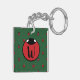 Four types of ladybugs; seven-spotted, two-spotted, pink-spotted, and Asian; make a polka dot pattern on a green background. Also called ladybirds or lady beetles, these insects protect farms and gardens from pests, particularly aphids. Customise the monogram on this keychain with your initial to make it your own.
