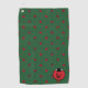 Four types of ladybugs; seven-spotted, two-spotted, pink-spotted, and Asian; make a polka dot pattern on a green background. Also called ladybirds or lady beetles, these insects protect farms and gardens from pests, particularly aphids. Customise the monogram on this towel to make a unique accessory for your days out golfing.