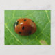 This cute postcard features a close-up photograph of a British 7 Spot ladybird sitting on a leaf. The photo was taken from directly above the ladybug using macro photography resulting in an image so detailed that you can see all the veins on the leaf that the ladybug is sitting on.