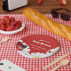 Paper plates for a ladybug themed baby shower that have a red and white colour scheme. These plates include a welcome message to your guests and feature several white daisies and two ladybugs. Simply customise the words, add these plates to your cart, and have a wonderful baby shower.