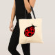 A traditional red and black ladybug decorates this bag. From an original illustration.