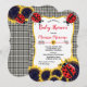 Cute Baby Girl Shower design featuring a ladybug trio with sunflowers on a golden yellow and white bracket frame with a black and white gingham check background. The gingham check, sunflowers and ladybug theme is continued on back. Composite vector design with original ladybugs illustration by Holiday Hearts Designs (rights reserved). If you have any questions or need assistance with the design, please message us or email us directly at info@holidayheartsdesigns.com, and we will be happy to assist you whenever possible. For questions about production, shipping and delivery, please contact Zazzle Customer Service directly. Holiday Hearts Designs is a professional design studio with over 10 years of experience on Zazzle with many satisfied customer reviews, so when you purchase with us, you can be assured that the utmost attention has been paid to every detail to create the professional quality our customers expect.