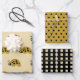 Ladybugs gold and black dots and squares wrapping paper sheet