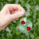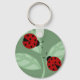Custom Basic Button Key chain has two cute ladybugs on leaves with a green background.