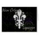 New Orleans themed note card with iron work fleur de lis, Mardi Gras colours and one of our favourite words...