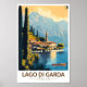 Lake Garda vector art design. Lake Garda, in northern Italy, is known for its crystal clear water. At the south end, the town of Sirmione is dominated by the Rocca Scaligera, a fortress with harbour views.