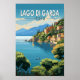 Lake Garda vector art design. Lake Garda, in northern Italy, is known for its crystal clear water. At the south end, the town of Sirmione is dominated by the Rocca Scaligera, a fortress with harbour views.
