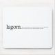 Available on many designs, this cool mouse pad one displays the word LAGOM. Lagom (pronounced [lɑ̀ ː ɡom]) is a Swedish word, meaning "just the right amount". Lagom can be applied to all situations, from food and drink to copyright and dioxide emissions.