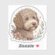 Celebrate the charm of the Lagotto Romagnolo with this adorable artistic sticker featuring the breed’s signature curly coat, soulful eyes, and teddy bear-like face. Rendered in a warm watercolor style with soft brush strokes and earthy tones, this design captures the Lagotto’s affectionate personality and truffle-hunting roots. Surrounded by subtle elements like paw prints, leaves, and mushrooms, it’s the perfect sticker for dog lovers who appreciate nature, loyalty, and a touch of whimsy. Ideal for decorating journals, water bottles, laptops, and more.