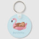 Laid Back Lazy Sloth Pink Flamingo Float Keychain